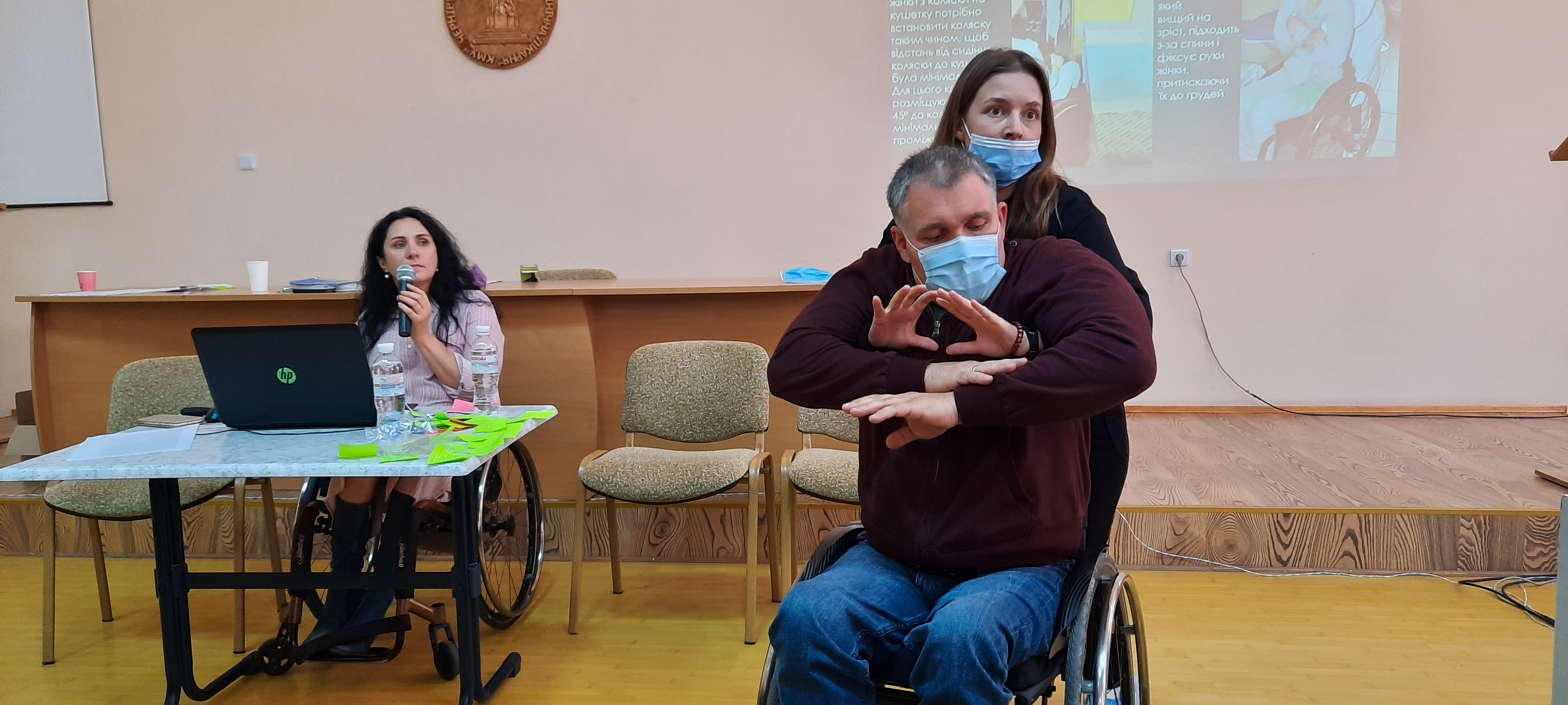 Загалом, дослідження, що проводилося в рамках проєкту було досить цікавим, адже полягало не тільки реалізацію так званої «офіційної» частини (інтерв’ю чи участь у робочій групі), а й передбачало участь у культурно-дозвіллєвих заходах та волонтерську діяльність. Цe і зазначені в інтерв’ю акції та флешмоби, і спортивні події, і тренінги. Останнім, хотілося б приділити більше уваги, адже саме вони мають практичну складову в контексті втілення інклюзії. Серед таких подій слід пригадати і тренінги для медичних працівників, на яких представників медичного персоналу навчали тому, як правильно обслуговувати осіб із певними нозологіями, і тренінги для представників центральної виборчої комісії України, протягом яких обговорювалися методи втілення виборчих прав для осіб з інвалідністю, і багато інших подібних заходів…